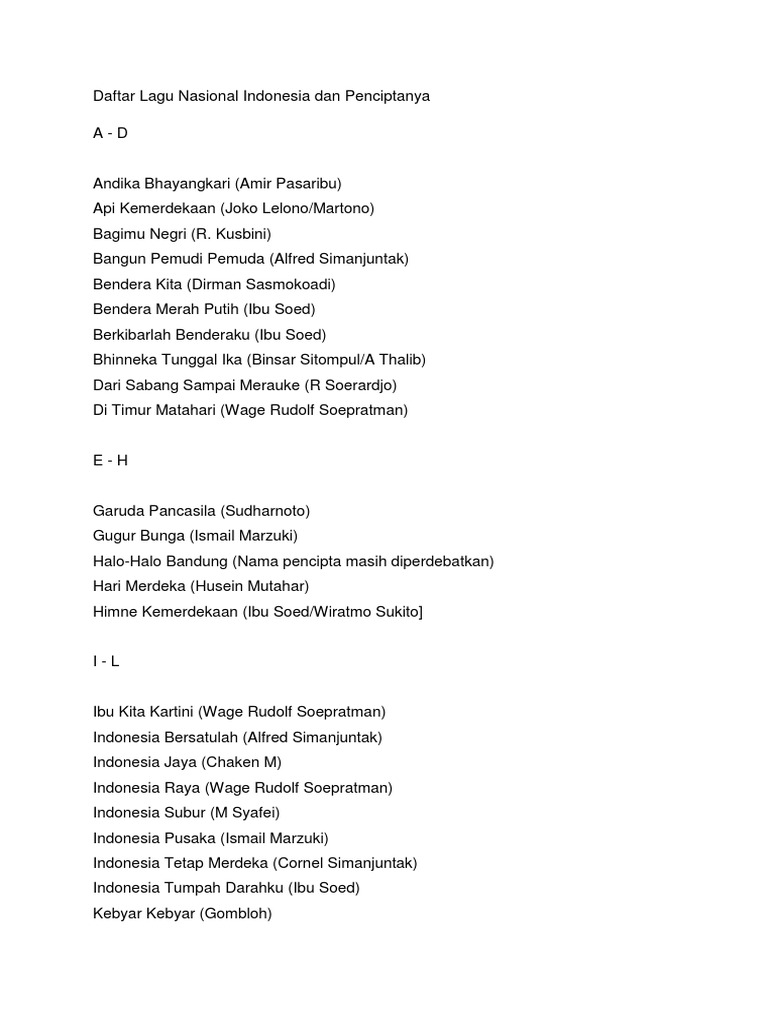 65 Daftar Lagu Wajib Nasional Dan Penciptanya Lirik Lagu