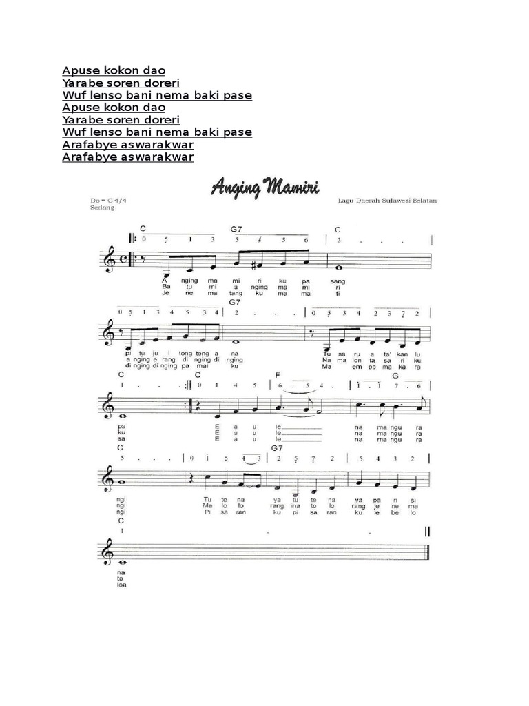 Notasi balok lagu wajib nasional untuk piano level pemula dilengkapi dengan not doremi solmisasi. Kenny cinta untuk mama ini not dasar lirik lagu. Aransemen musik oleh junfarabi.