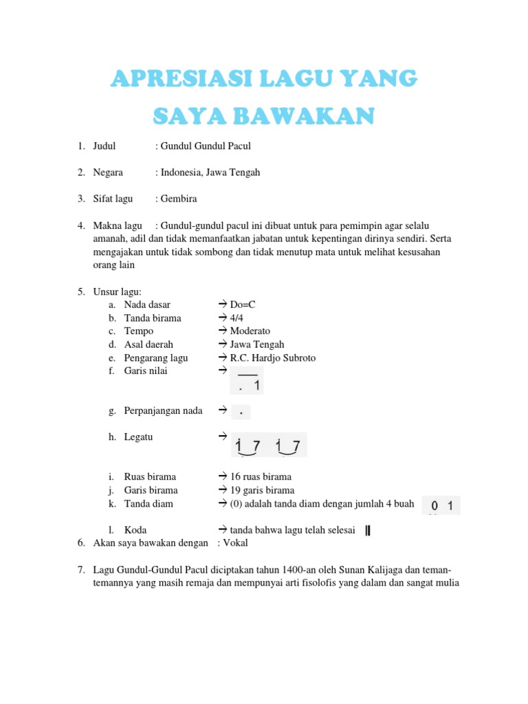 Lagu Gundul Pacul Bernada Brainly Co Id