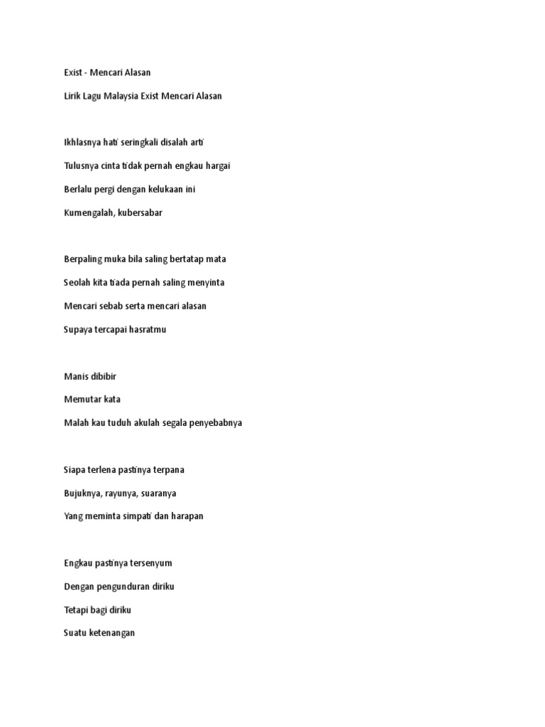 Chord Gitar Dan Lirik Lagu Mencari Alasan Exist Tribun Manado