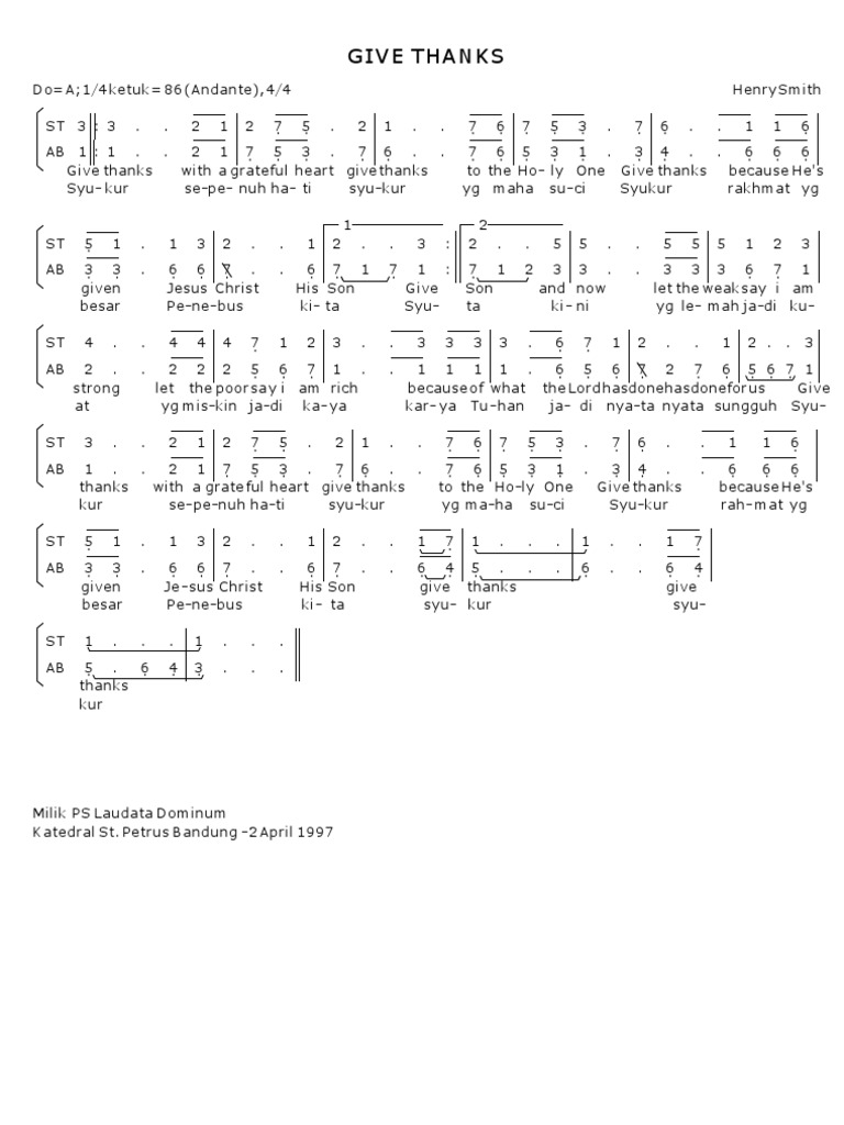 Give Thanks Syukur Henry Smith Satb2 Partitur Satb
