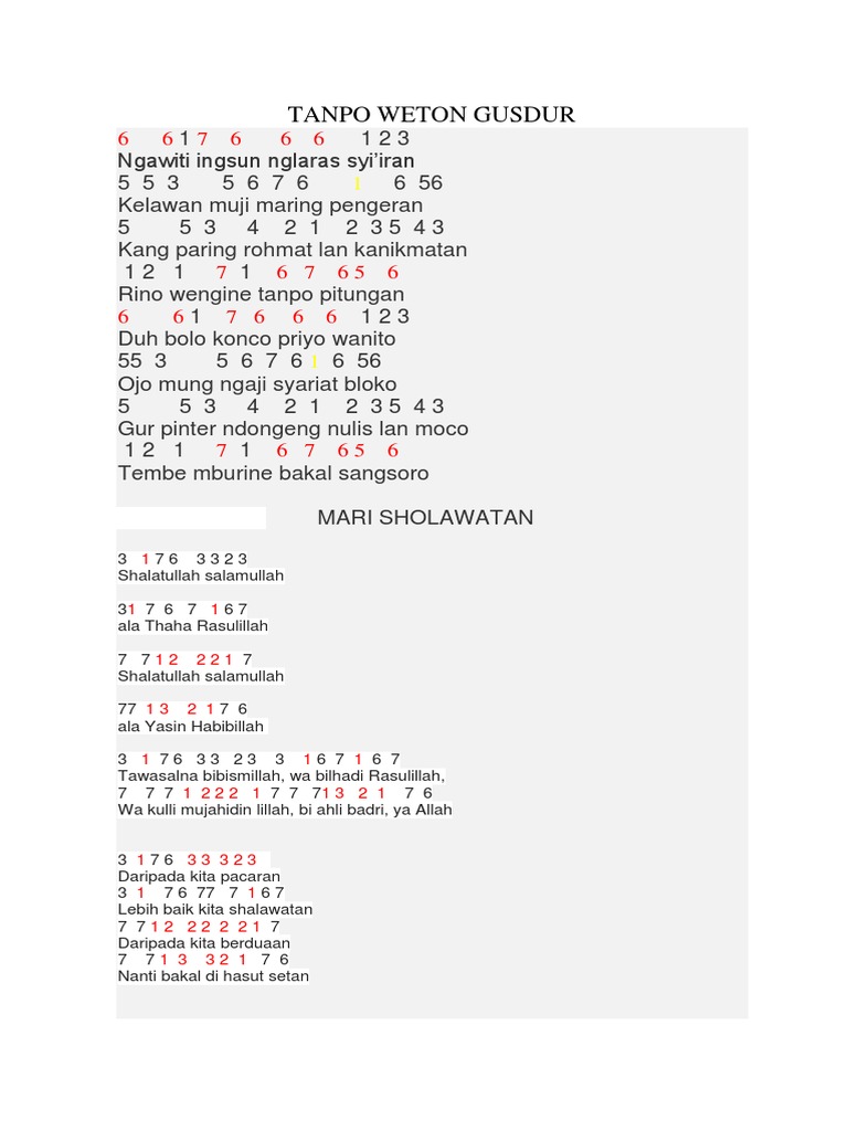 Not Angka Wali Yang Penting Halal Dunia Lirik Not Lagu