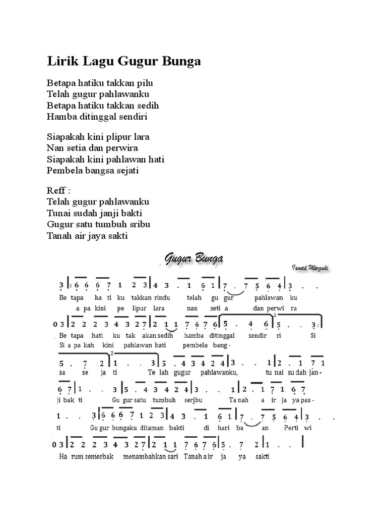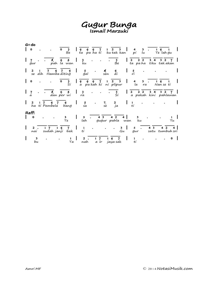 Gugur Bunga Not Angka Not Balok Lirik Chord Filenya
