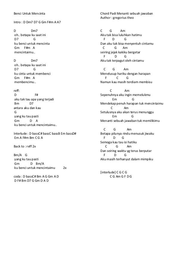 Chord Dan Not Angka Lagu Bagi Tuhan Tak Partitur Not Angka