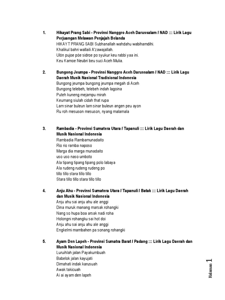 Kumpulan Terlengkap Lagu Daerah Blibuku Com